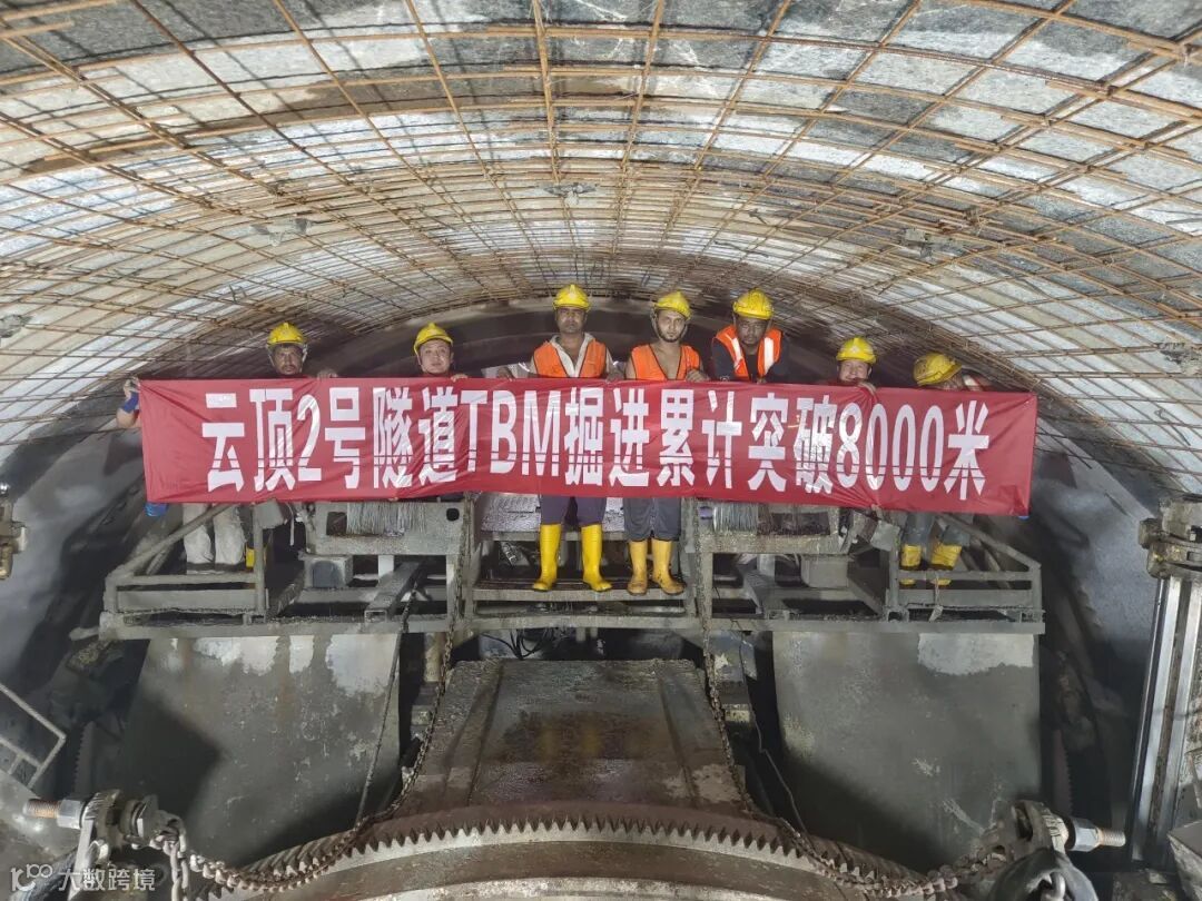 9月18日,中交马东铁项目七分部云顶隧道敞开式硬岩掘进机(TBM)“云顶二号”掘进累计进尺成功突破8000米大关。截止目前TBM“云顶二号”已深入反坡排水段达1937米。