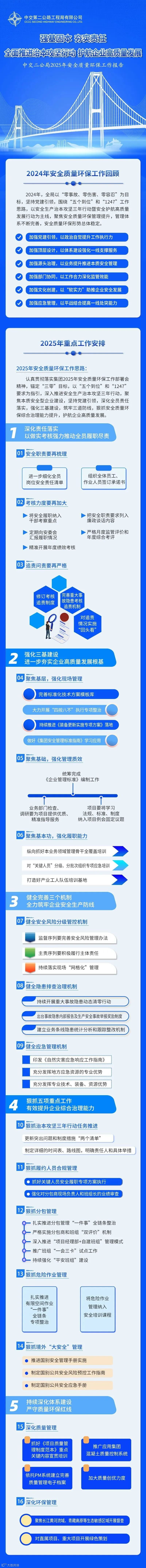 局党委副书记、总经理李灏在会议总结中强调,一是深化思想认识,持续夯实“三管三必须”全员安全生产责任,构建齐抓共管的工作氛围。二是聚焦重点,狠抓重大风险和关键环节措施落实,切实强化现场管理提升。聚焦危大工程施工方案执行落地、分包全链条管理、风险管控和隐患排查治理等重点管控环节,聚焦有限空间作业“一件事”全链条整治、长大隧道、高墩大跨桥梁、地铁盾构区间等现场管理堵点痛点寻求突破。三是健全体系,完善机制,为局高质量发展提供质量环保支撑。要加强质量管理体系建设,摆正质量、工期、效益关系,加强班组质量管理,深入推进质量创优工作。要巩固提升集团环保督查整改成效,切实推动环保管理“五个到位”。四是狠抓关键时期,抓好岁末年初及“春节”、两会期间安全生产。要提前部署好节后复工和两会期间安全生产、信访维稳和应急值守工作,有效防范化解各类风险,牢牢守住红线和底线。