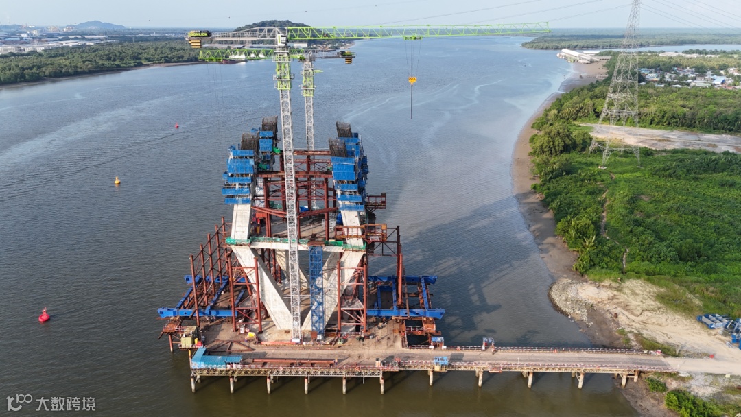 近日,随着最后一片拼装零件安装到位,马来西亚砂捞越塞京卡特大桥P7主墩前支点挂篮底蓝承重结构顺利拼装完成,标志着大桥正式进入主梁施工阶段。