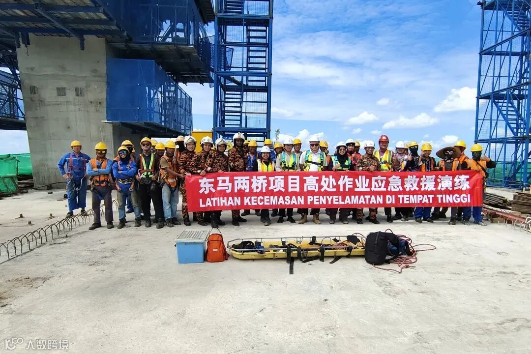 在应急救援演练准备阶段,项目与属地消防局进行了充分沟通,确保应急救援措施、流程全部符合马来西亚当地标准,为了让演练更加贴合实际,所有演练实操工具均由消防局提供。在演练前,消防局人员和属地安全官向与会人员讲解了高空坠落事故发生后应急救援、急救等相关知识。演练过程中,在消防局人员的现场指导下,项目应急救援演练队伍密切配合,按照演练计划圆满完成了各项任务。
