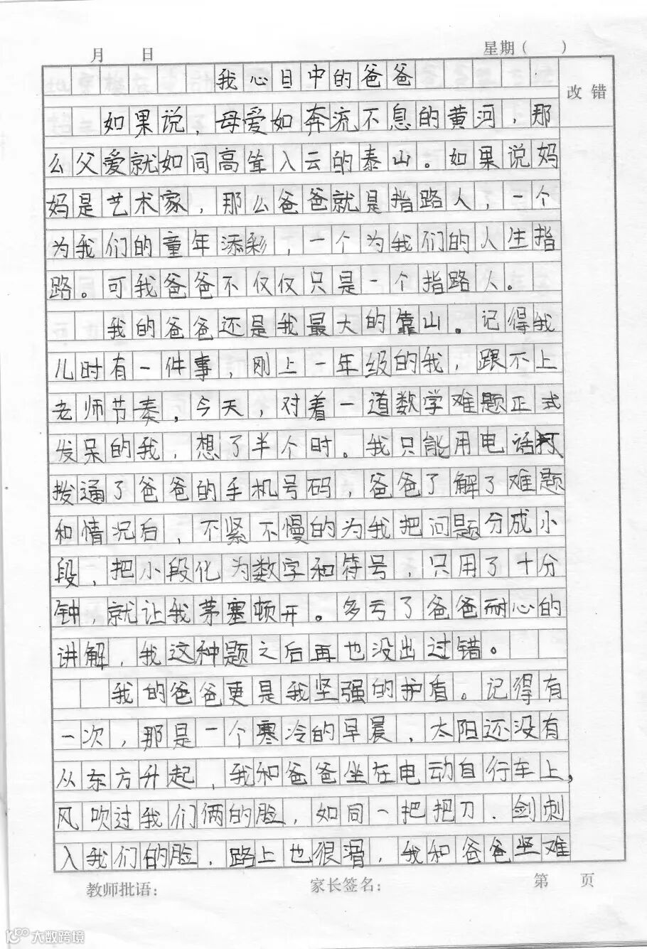 内容展示:如果说母爱如奔流不息的黄河,那么父爱就如同高耸入云的泰山;如果说妈妈是艺术家,那么爸爸就是指路人。一个为我们的童年添彩,一个为我们的人生指路。可我的爸爸他不仅仅只是一个指路人,他还是我最大的靠山。