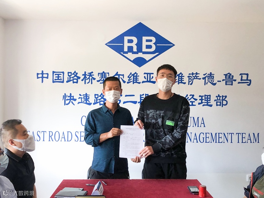 (师带徒签约仪式——塞尔维亚诺维萨德项目 我和我的徒弟张子童(右一))