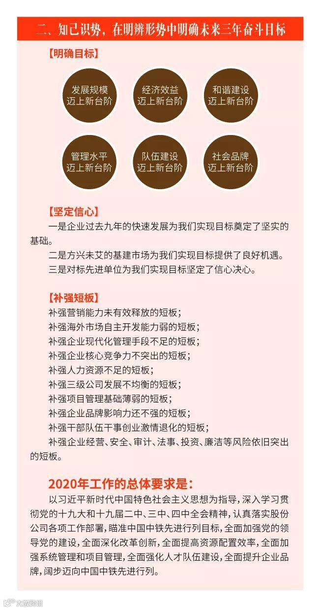 报告总结了2019年取得的显著成绩,明确了未来三年企业的奋斗目标,提出了2020年主要奋斗目标,重点要抓好六个方面工作。