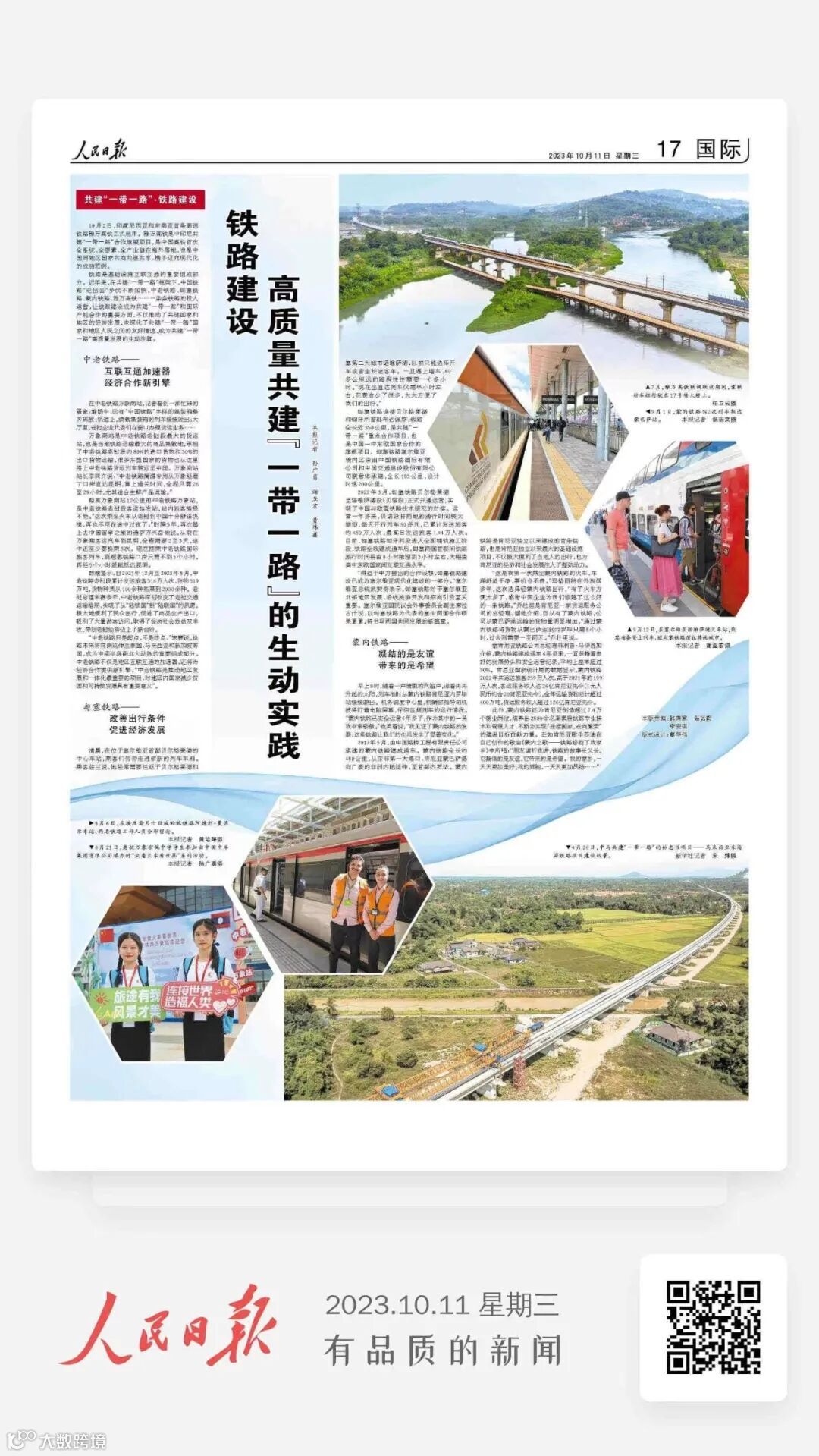 10月11日,《人民日报》7版国际以《铁路建设—高质量共建“一带一路”的生动实践》为题,专版报道中国企业在境外承建的各大铁路项目。其中,局参建的肯尼亚蒙内铁路和马来西亚东海岸铁路分别以文字和图片形式进行展现。