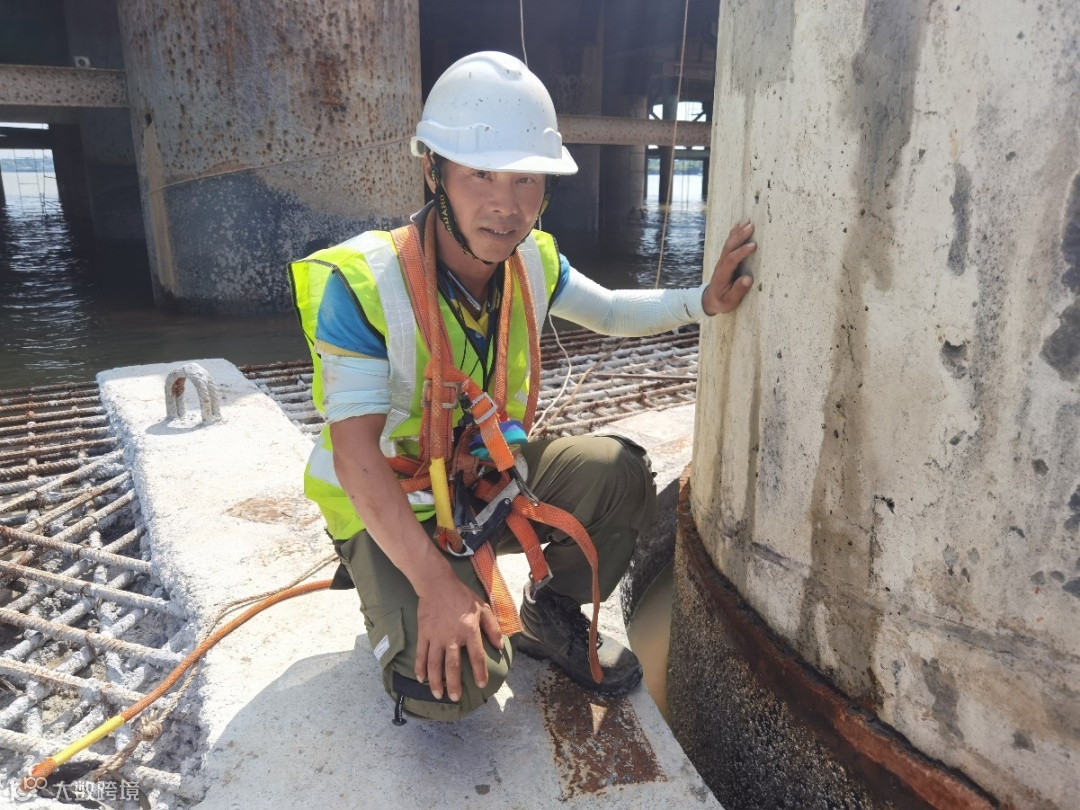 刘洋是今年4月来到马来西亚两桥项目的,担任塞京卡斜拉桥P7主墩工班长,“个子不高,帅气、精明能干”是同事工友对他的第一印象,仅仅一个月后,现场同事对他的评价就变成了“干活踏实、责任心强、施工经验丰富、技术老练、点子多”。印象的加深源自刘洋出众的现场管理能力,举例来讲,塞京卡斜拉桥的主墩承台预制块拼装是关键工序。拼装施工开始前,刘洋根据多年经验判断实际桩位和成型的预制块尺寸是允许有误差存在的,每一根和每一块的误差都不相同又会放大这种误差,拼装中如果仅依靠图纸尺寸,反复调整必将造成窝工。所以他提前策划,要求测量组在起吊前对预制块孔位中心点和钢护筒孔位中心点重新定位,并分别多点标识,吊装中只要二者做到精确对应,拼装精度就不在话下,还可以极大的节约工时,提高工效。首块底板吊装完成后,刘洋在P7墩班组严格贯彻这一措施,吊第一块的同时测量标识第二块,今天吊装完成就提前安排第二天的吊装任务。人员、设备、物资一一安排妥当、责任到人,安装效率大大提高。