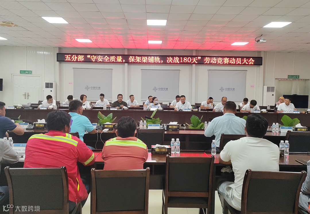 为确保项目铺轨工期,4月12日,中交马东铁项目五分部组织召开“守安全、质量,保架梁、铺轨,决战180天”劳动竞赛启动会,业主代表、总经理部第二现场办、分部领导班子成员、工点负责人及各分包队伍代表参加了会议。