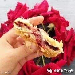 每一个鲜花饼用料都是法国重瓣红玫瑰,看得见的品质,吃得到的芬芳,新鲜现烤。采用的生产技术、工艺以及配方属于公司自主知识产权,产品完好的保留了鲜花中的营养成分,产品中不含任何人工香精及色素,并且在200°高温下仍能完好保持鲜花本有的色、香。