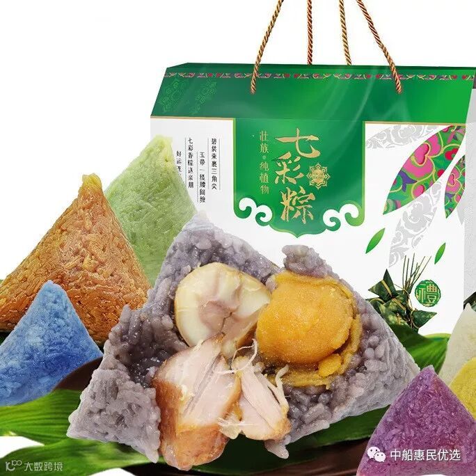 甄选长糯米,饱满易煮,香味浓郁。萃取植物中的营养,植物染制,安全健康。多重营养,粒粒清香。传承的是一份匠心,一种文化。壮族七彩粽的美味,不仅在于它的传统手作工艺和经典配方,更在于它的认真选料:新鲜猪肉、秘制又烧、优选绿豆。高山板票以及防城港海鸭蛋黄,新鲜出锅的粽子,软霉香甜,油而不腻,让人赞不绝口。