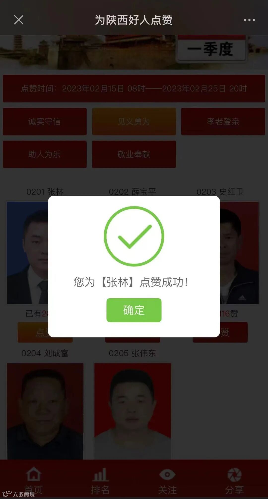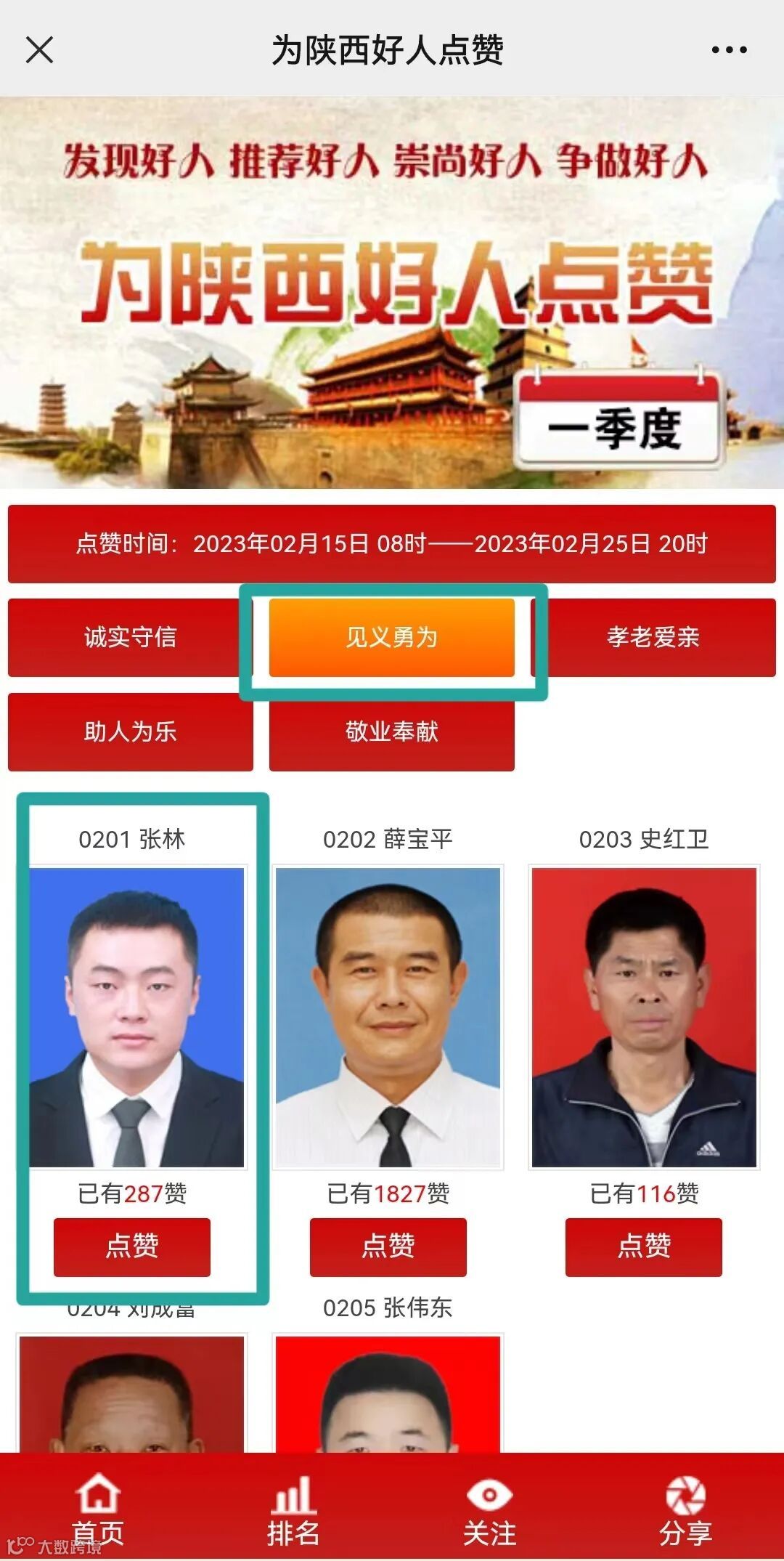 在公众号主页菜单栏点击“为陕西好人点赞”,进入“为陕西好人点赞”页面。