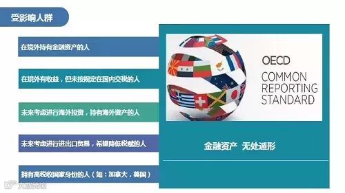 以及保有在华金融账户的来自CRS参与国的海外华侨华人;持有海外金融账户的中国籍个人;中国籍个人持有超过25%的公司股权,且该公司拥有海外(即CRS参与国的)金融账户等等。