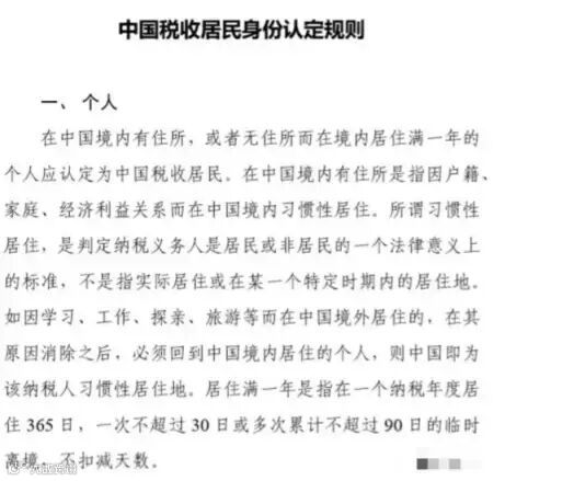 **2019年1月1號生效,**中國税务居民全球收入都要交稅**