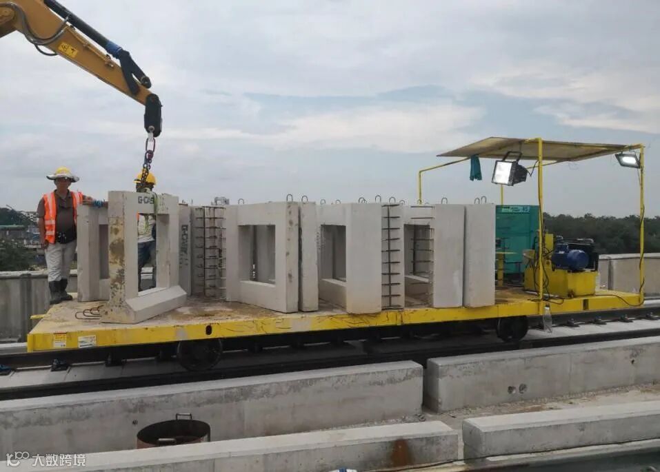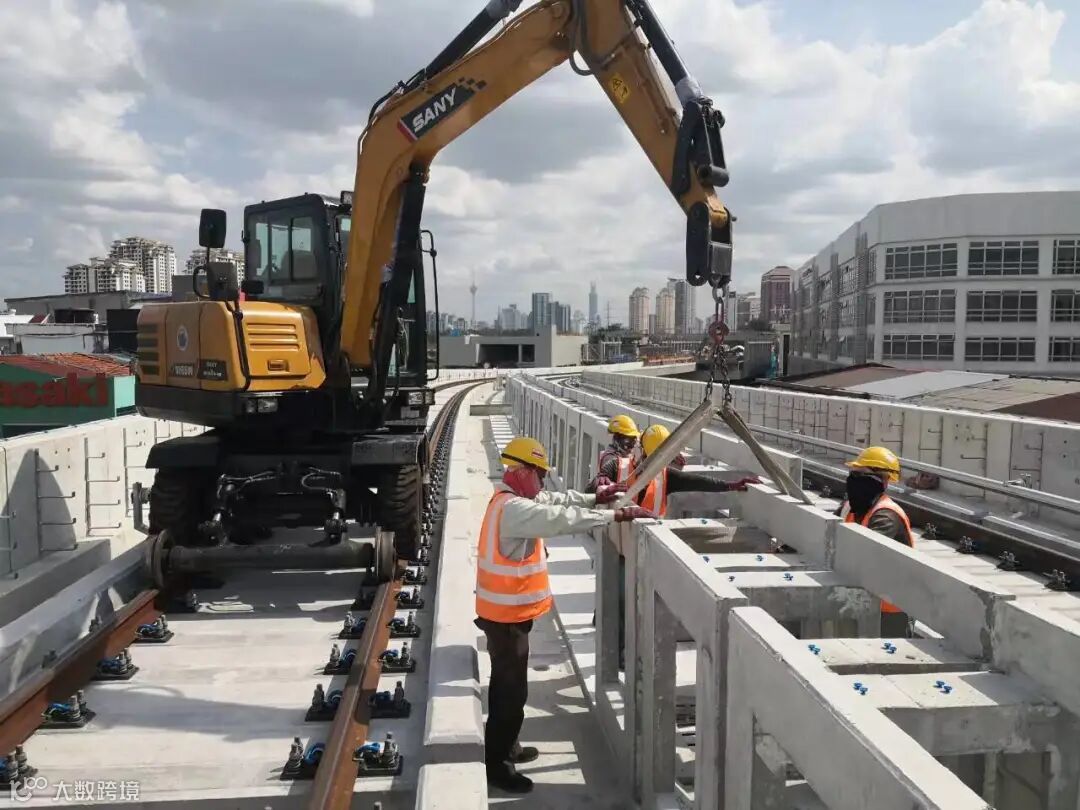吉隆坡地铁二号线铺轨项目位于马来西亚吉隆坡,全线双线共计57.7公里,其中疏散平台总长71.98公里,分为隧道段和高架段,高架段长度为51.19公里。高架段可分为单线桥梁及双线桥梁,根据线路条件,高架段疏散平台又分为侧式疏散平台和中间疏散平台两种。因为位于繁华市区地段,疏散平台混凝土预制件单块重量大且容易磕坏,在将预制件吊装上桥后,桥面运输和吊卸安装成为令施工团队头疼的事。