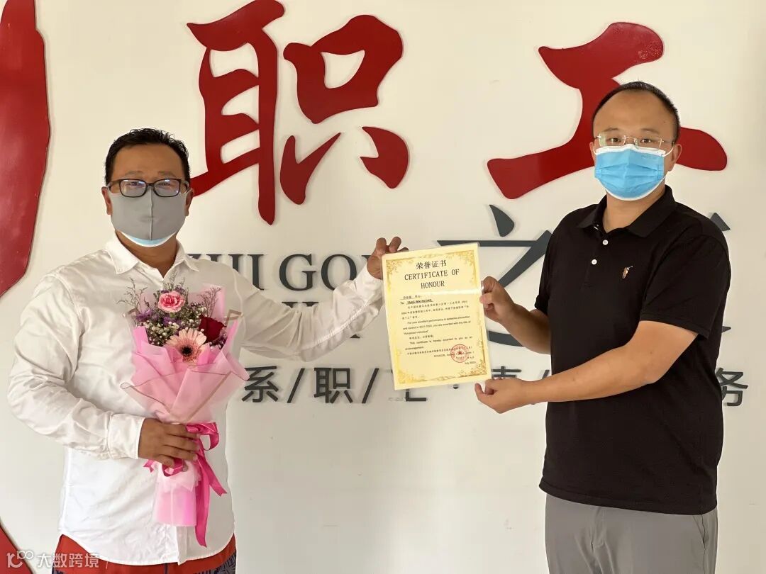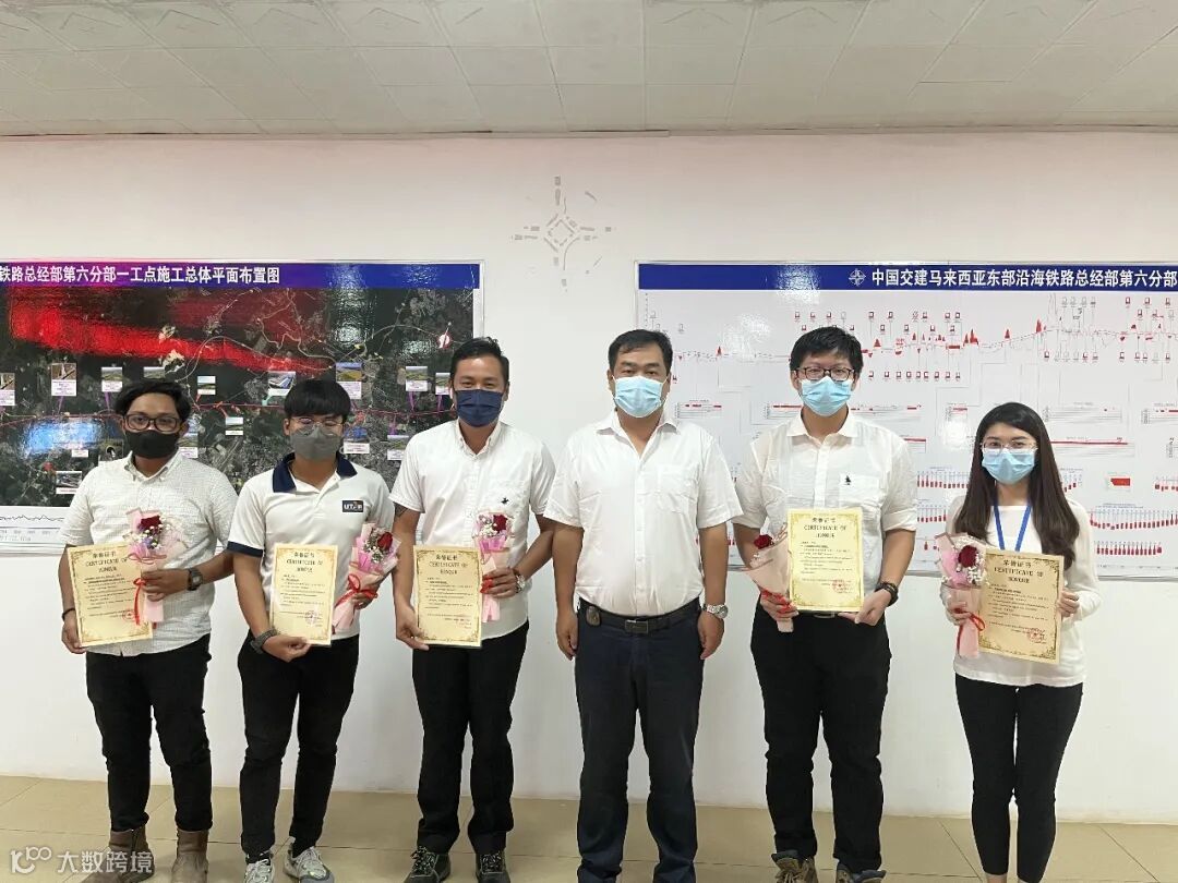 会议首先对中交集团2020-2021年度优秀外籍青年员工邓伟强做出表彰,邓伟强通过视频会议发表获奖感悟并对项目部表示诚挚的感谢。随后对2022上半年度优秀属地员工进行表彰,分别表彰安全卫士3人,先进个人3人,岗位标兵6人以及在疫情防控工作中表现突出的员工,给他们颁发了证书。最后项目领导向受到表彰的属地员工表示祝贺,对他们为项目施工生产做出的杰出贡献表示衷心的感谢,希望他们在今后的工作中能够披荆斩棘,一往无前。