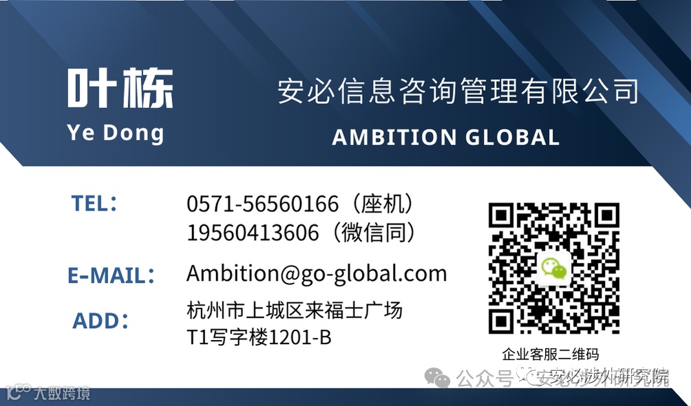 安必涉外是一家以服务中资客户跨境投资为核心的专业咨询公司,致力于为客户解决跨境投资中的“往哪投”、如何投”、“投多少”等问题,提供商务、法律、合规、财税综合咨询方案及代理服务。我们与全球83个地区145个国家的律师事务所、会计师事务所、咨询机构等密切合作,目前在杭州、宁波、台州、中国香港、新加坡、泰国、印尼设有本地直营机构,拥有跨文化协作及法律、国际财税、商务咨询、合规咨询服务经验的专业团队,为中资客户全球布局与发展提供全面咨询和落地支持,坚持“安全出海,使命必达“的自我要求,助力客户稳健高效地实现国际化发展目标。
