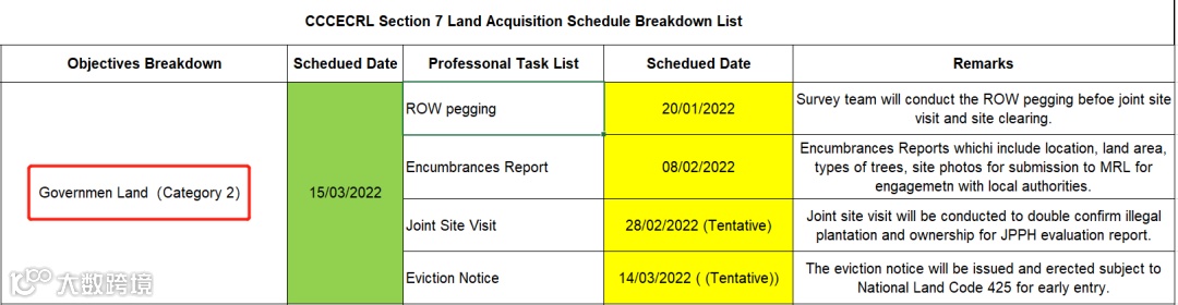 流程管理:根据《金字塔原理》强调的书面表达逻辑:工作情境(Situation)-冲突(Conflict)-疑问(Question)-答案(Answer and Solution),写作的过程也是工作实践的过程。在真实的工作情境中,当我们埋头苦干,奋力拼搏的同时,应适当停下脚步,静下心来,以目标为导向,反思具体工作情境中的冲突和问题,梳理各自职责范围内的流程,比如马来西亚公有土地征地流程中的二类地(Category 2),根据施工需要在既定目标前必须进场,目标指明前进的方向,经过梳理,实现目标需要经过红线放样(ROW Pegging),障碍物报告清单(Encumbrances Report),联合现场踏勘(Joint Site Visit),JPPH评估报告(Evaluation Report),签发驱逐令(Issuance of Eviction Notice)等典型的工作任务,并设定完成任务的具体时间节点(Specific & Time-bounded),同时强调流程计划的严肃性和执行力,对流程常怀感恩、尊重和敬畏之心,心往一处想,劲往一处使,最终实现既定目标(见表一)。