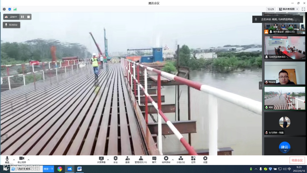 6月16日,由公司安全总监韦永华带队,对马来西亚两桥项目开展远程督查,针对前期挂牌督办的整改落实情况进行查看,公司总部安全、生产、技术、物资设备等业务部门参加督查。