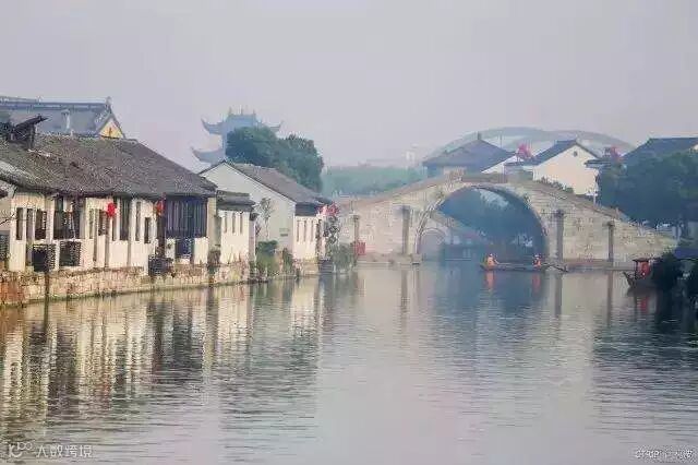 清晨透过黎明河流上氤氲的薄雾,此时的周庄如同凸现在一片画布上,清新而温婉。