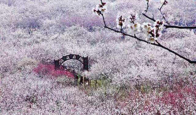 位于江苏吴县光福乡邓尉山,距苏州城西南30公里处。崇山前抱,太湖后绕,独得地利。梅开时节,满目香雪,人称"十里香雪",有"邓尉梅花甲天下"之称。