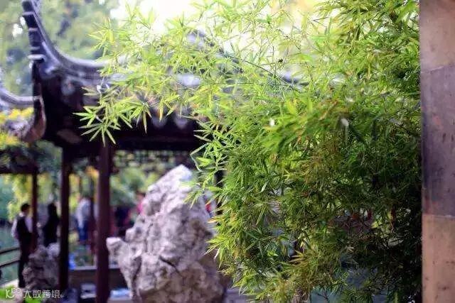 在留园能领略到山水、田园、山林、庭园四种不同景色,小桥流水,亭台楼阁,加上春季独有的清新的嫩绿,整个园林映衬的清净悠然。