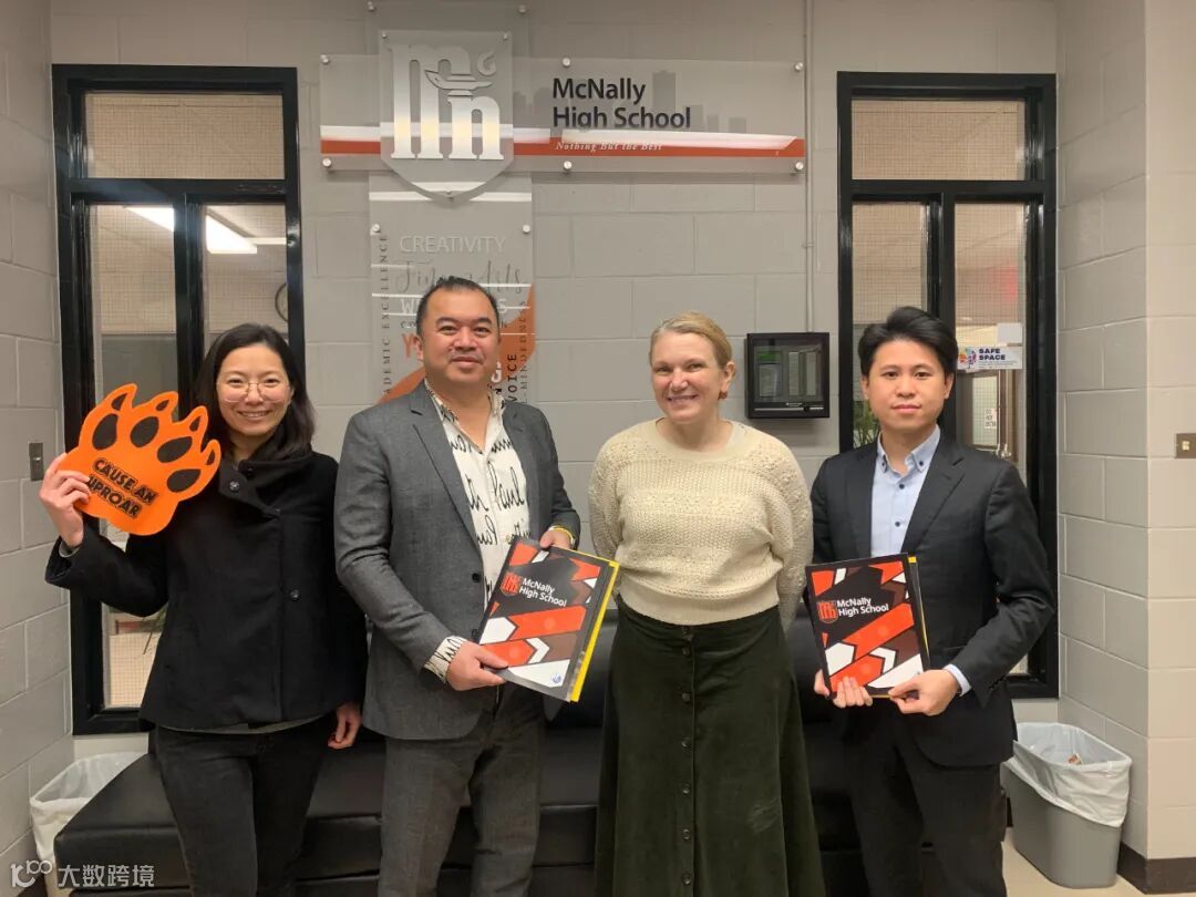 麦克纳利高中学术及升学顾问Davie Thompson(右二)、机器人及商科课程老师Leo Li(左二)与AQG安侨顾问