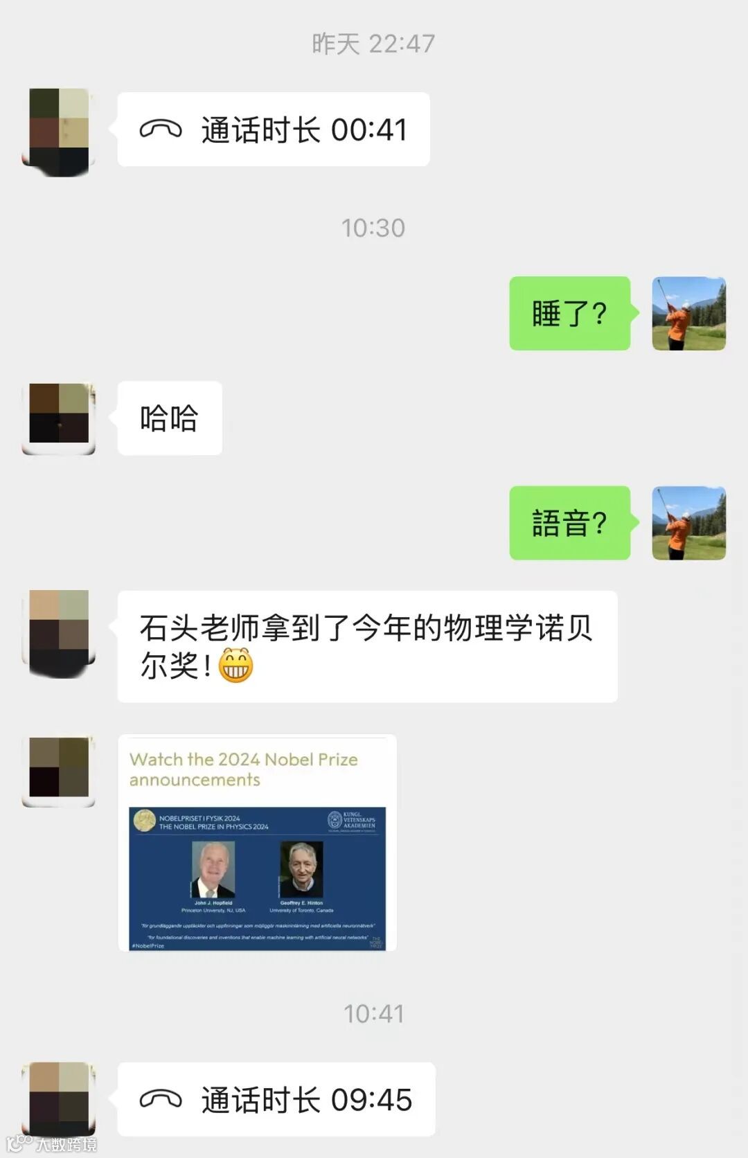 诺贝尔物理学奖授予了两位科学家Geoffrey Hinton和John Hopfield,以表彰他们在机器学习领域的贡献。