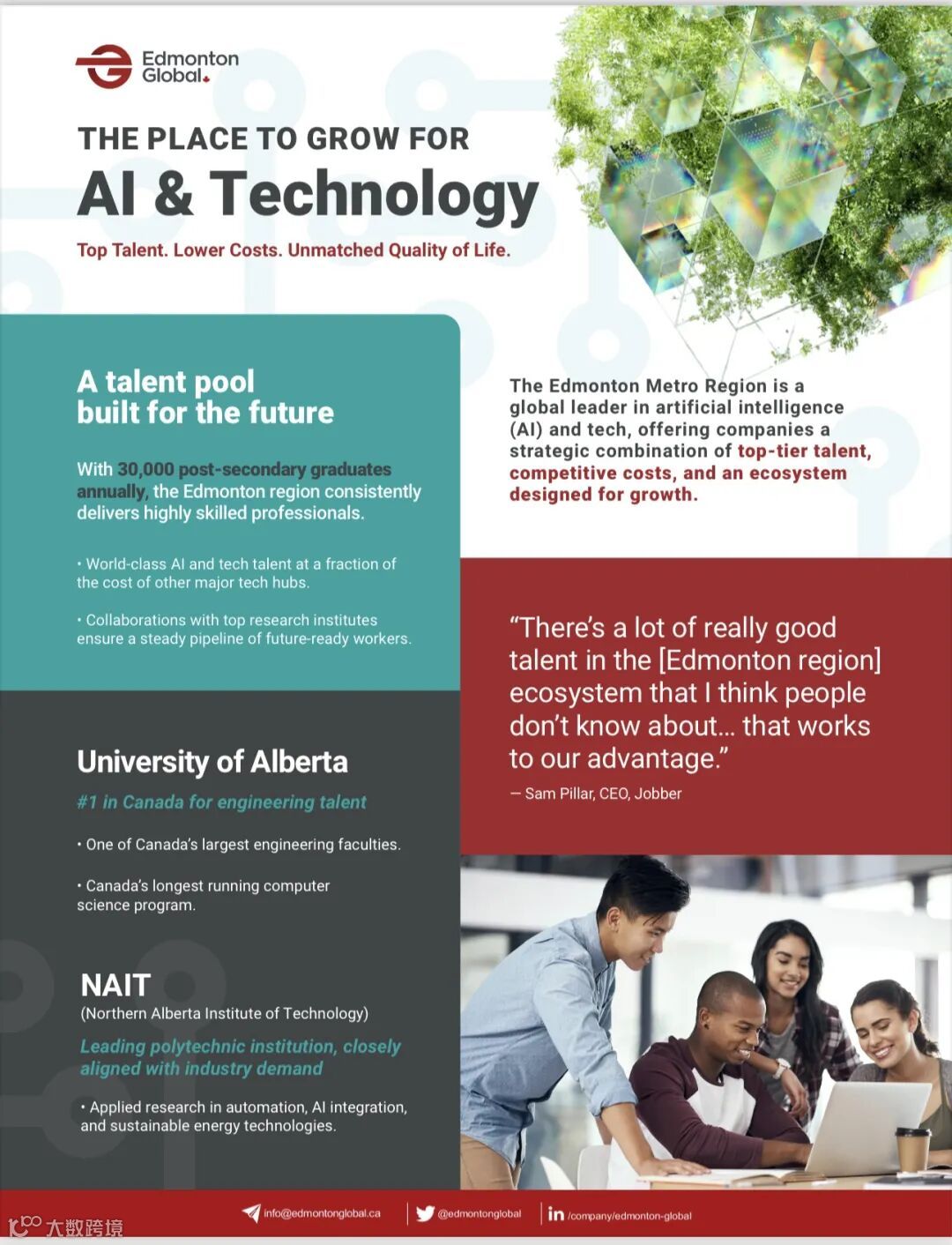 • 全球人工智能研究排名前五的创新中心——Edmonton Global