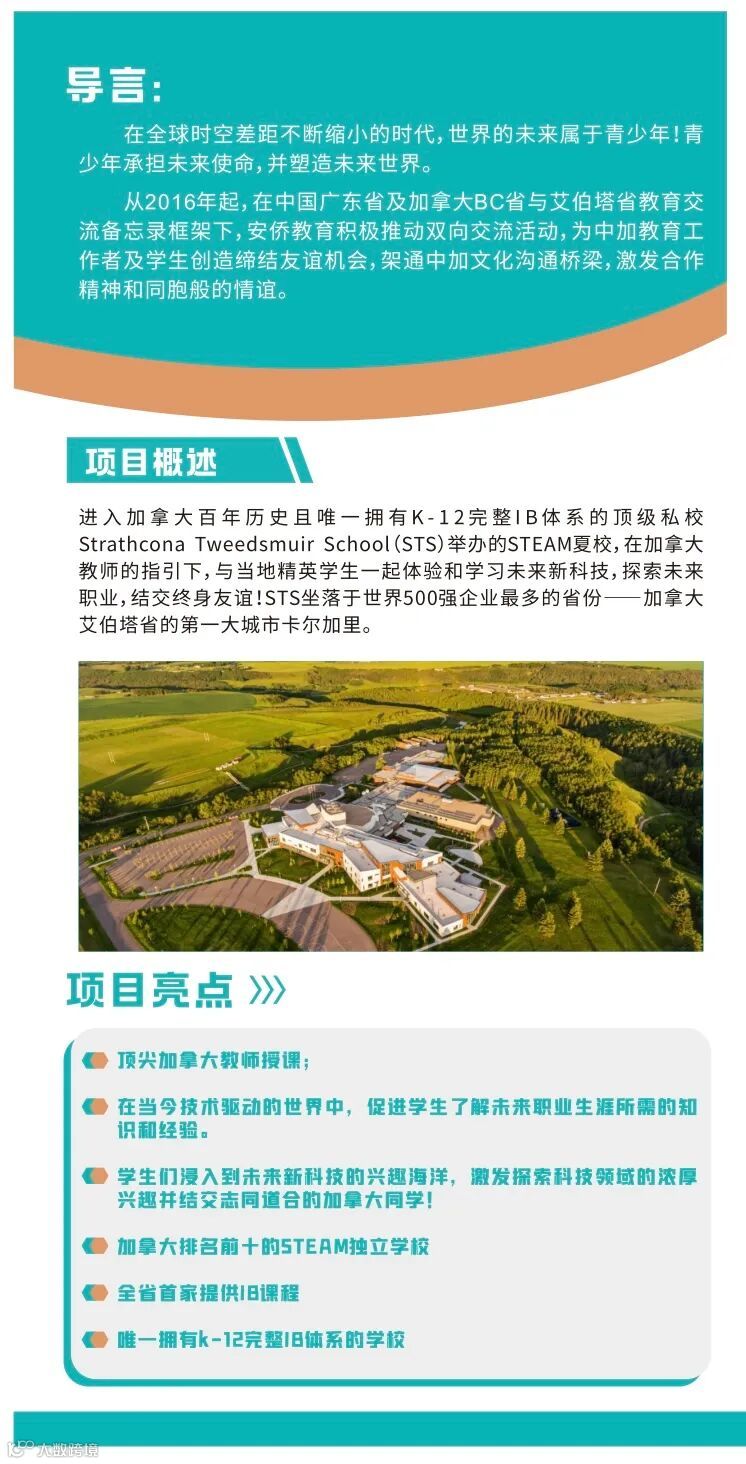 这是罕有的加拿大艾伯塔省百年历史的第一科技名校STS与BC省创新学校珀塞尔独立学校姐妹校联合并首次面向姐妹校学生国际教育交流活动。这也将开创广州学生暑期首次进入加拿大艾省科技教育领先的独立名校与加拿大艾省卡尔加里学生一同体验AI,太阳能朋克等STEM课程的历史。