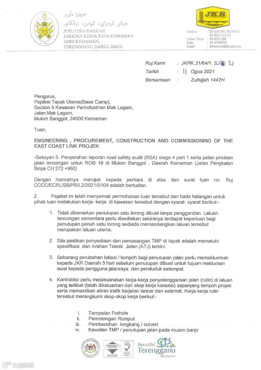8月11日,中交马东铁项目五分部率先取得两座ROB桥梁施工批复函,是全线首个ROB桥梁施工许可。