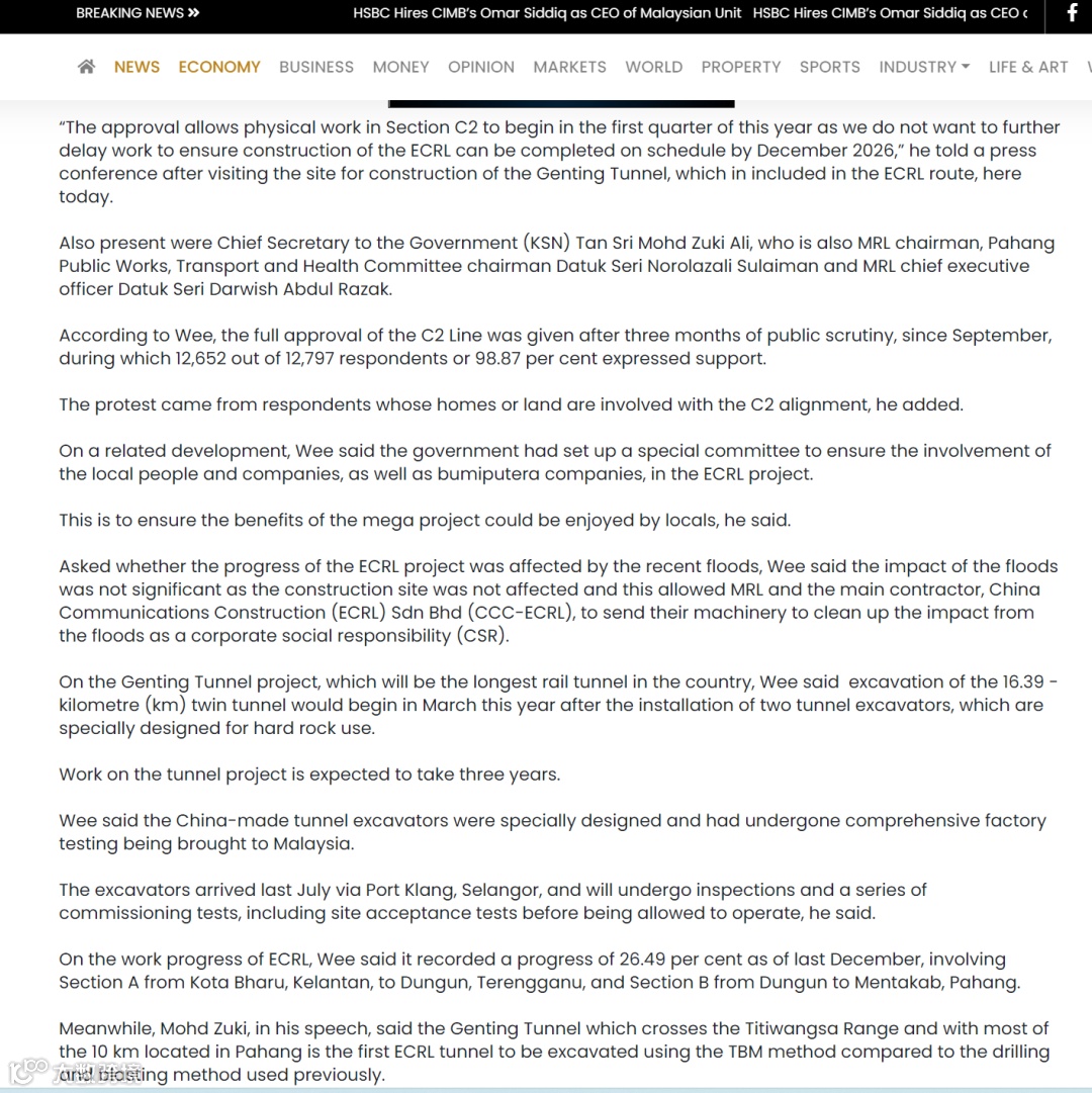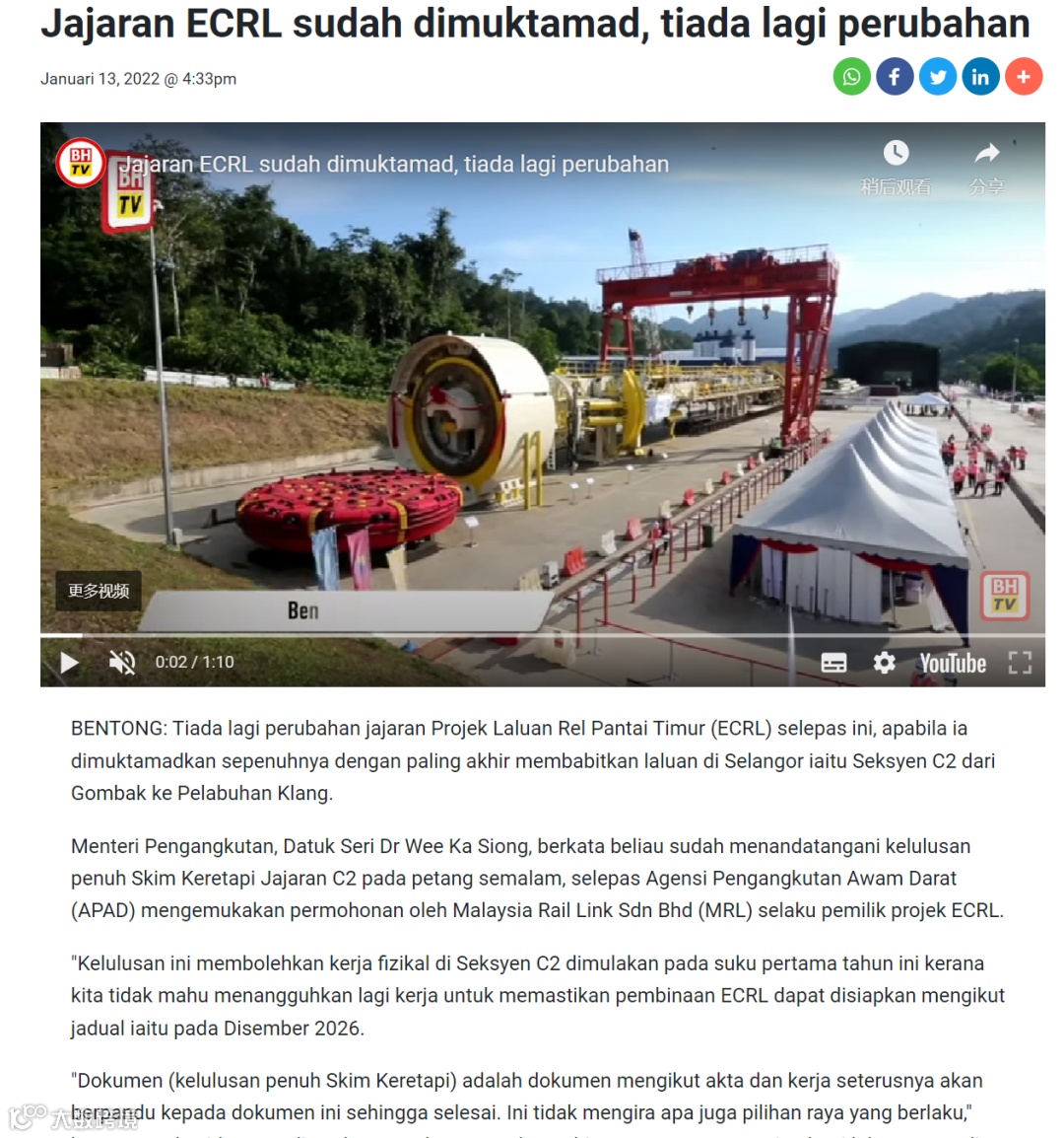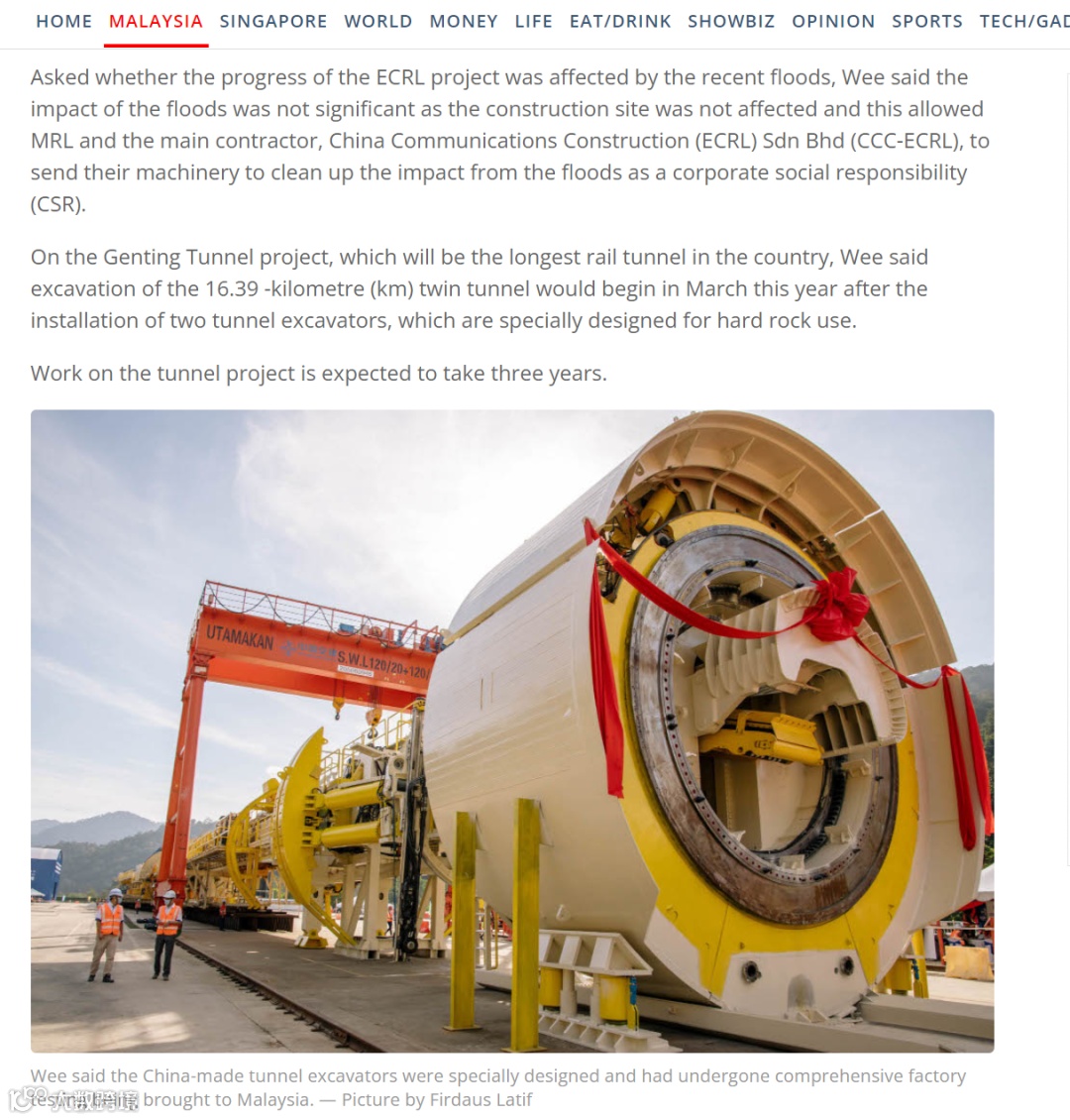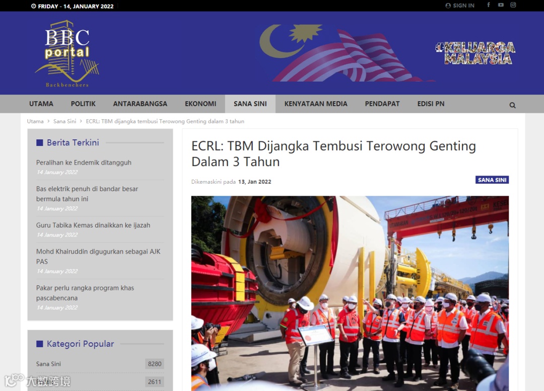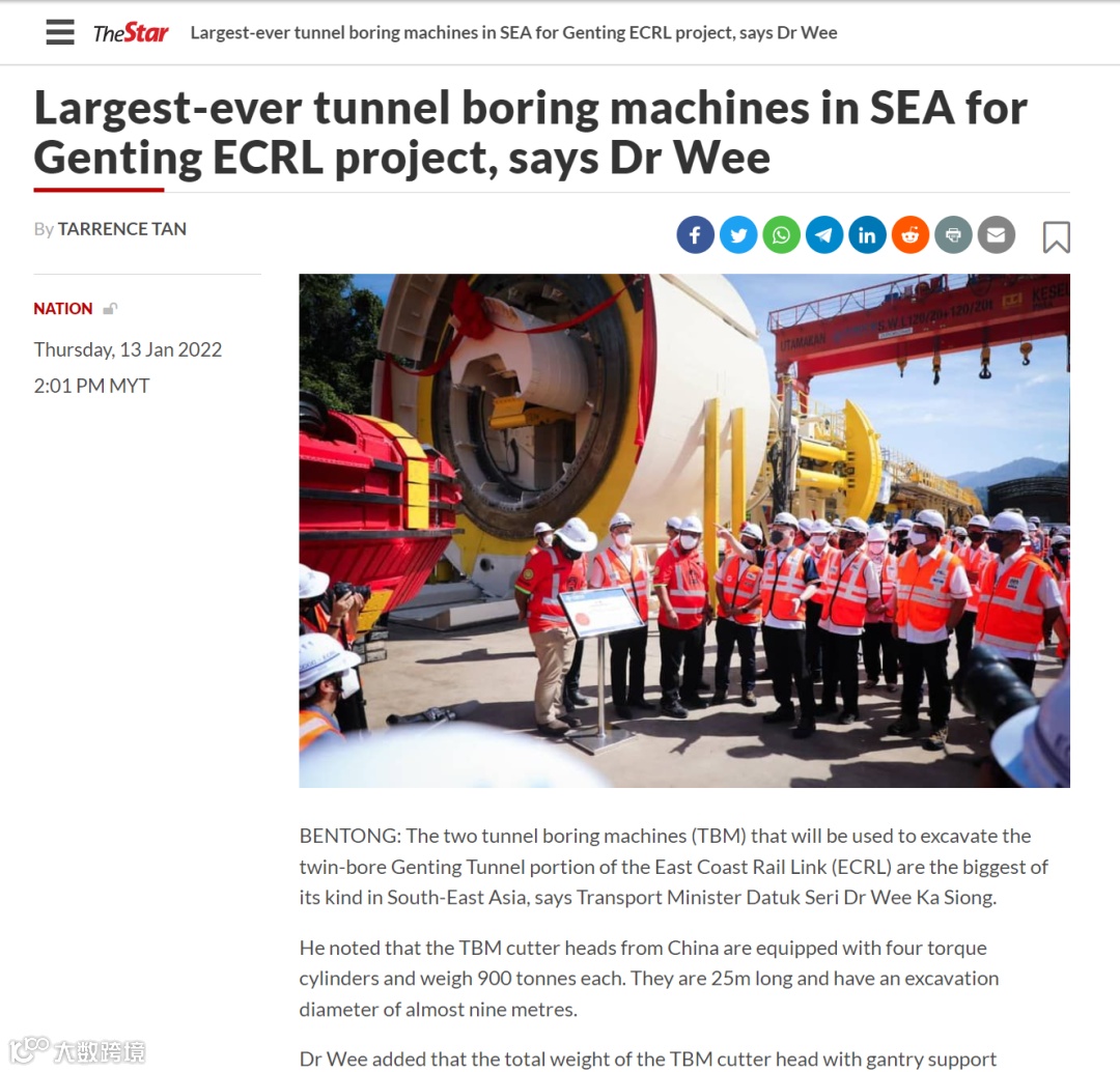 1月13日,马来西亚交通部长拿督斯里魏家祥在中交马东铁项目七分部云顶隧道施工现场召开新闻发布会,对中国交建建设者丰富的经验和专业的技术表示高度认可。