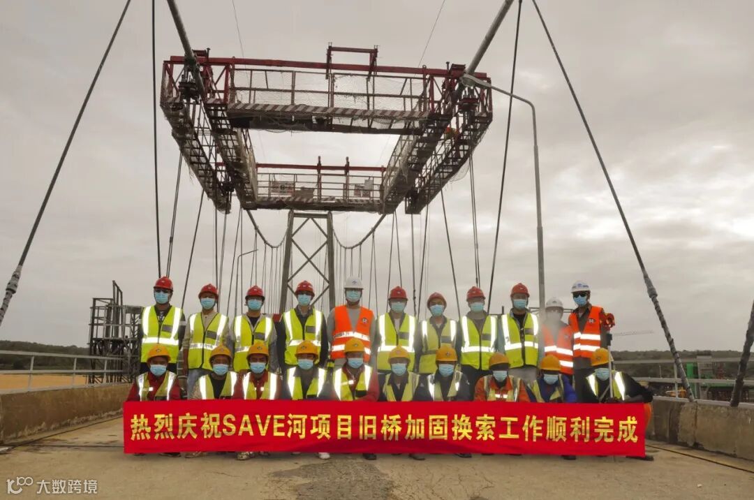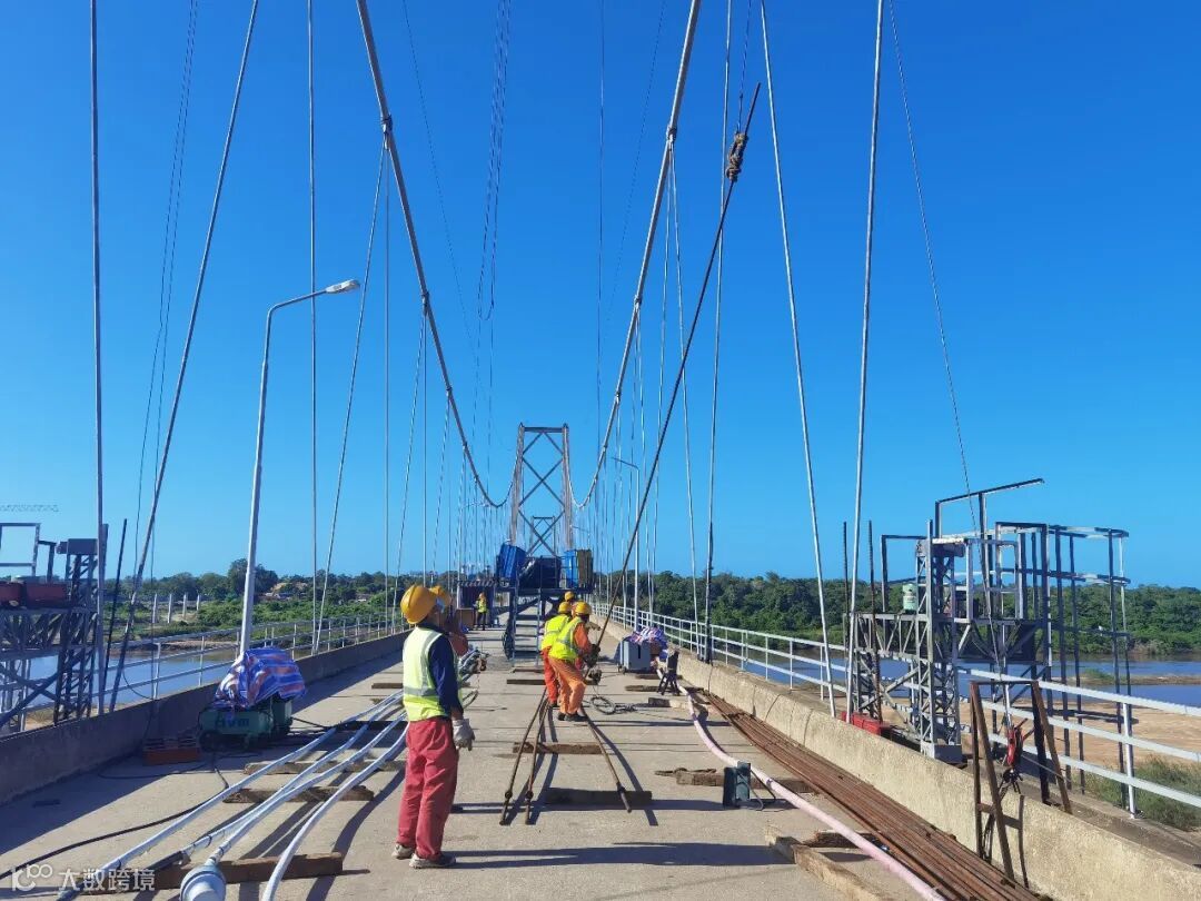 当地时间6月21日,莫桑比克SAVE河项目旧桥加固工程悬索桥全部共计328吊索更换施工圆满完成。