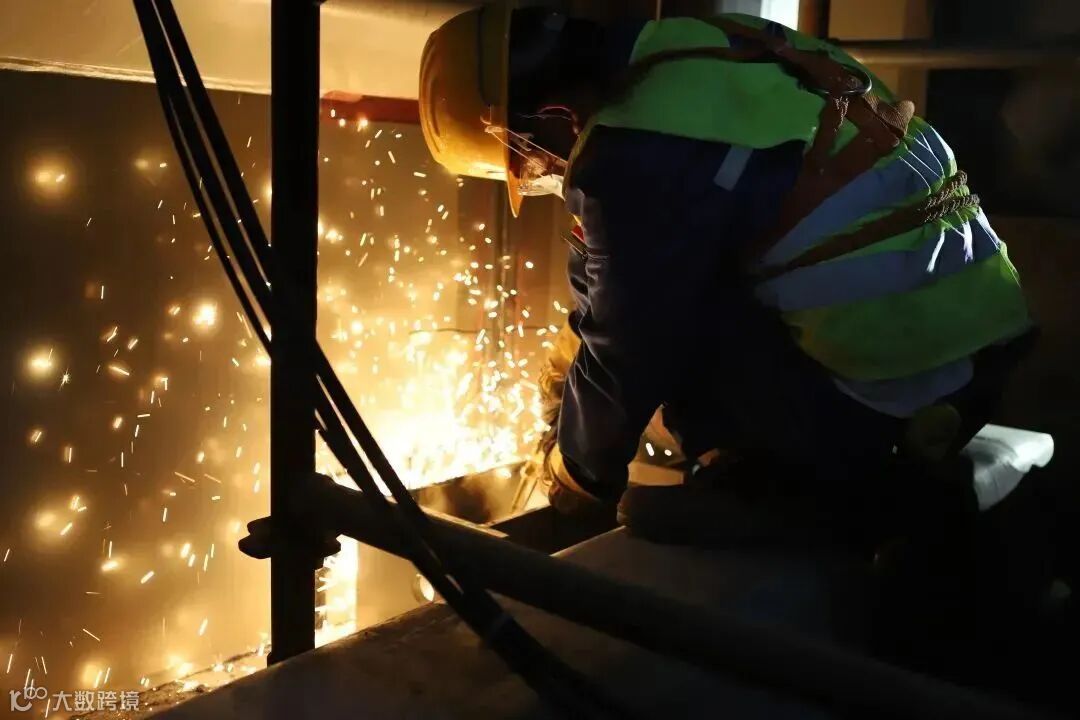 ▲钢箱梁环缝焊接(图/张佳乐)