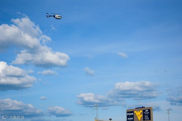 一架直升机离开了鲁比纪念医院位于摩根敦的健康科学中心。Rebecca Kiger为《纽约时报》报道