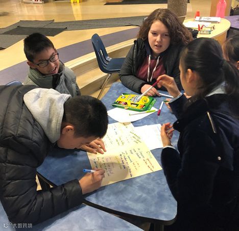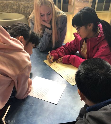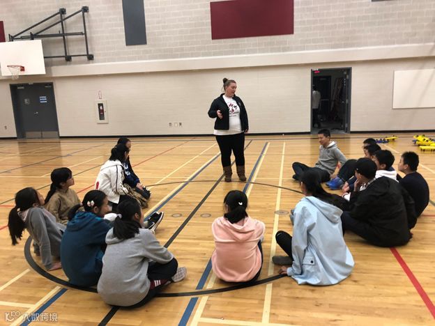 Robyn老师为同学们讲解冬运会的背景知识,包括赛事级别、运动项目、参赛人员以及开幕式流程。并且,如同每一个国家级运动会开幕式一样,本次冬运会开幕式的重头戏也是升国旗、演奏国歌。因此,Robyn老师为同学们逐字解析加拿大国歌,让同学们体会到加拿大人民发自内心的民族自豪感。同学们在学习过程中展现出了极大的兴趣,并且以小组形式与学生大使进行探讨。