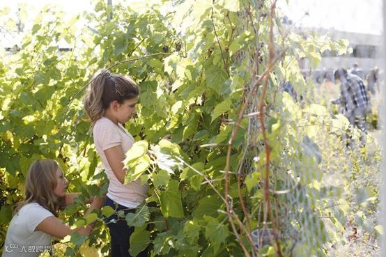 校园内有包含40个高位栽培床,125棵果树,10张野餐桌,鸟窝,蝙蝠屋和常青树的户外花园;