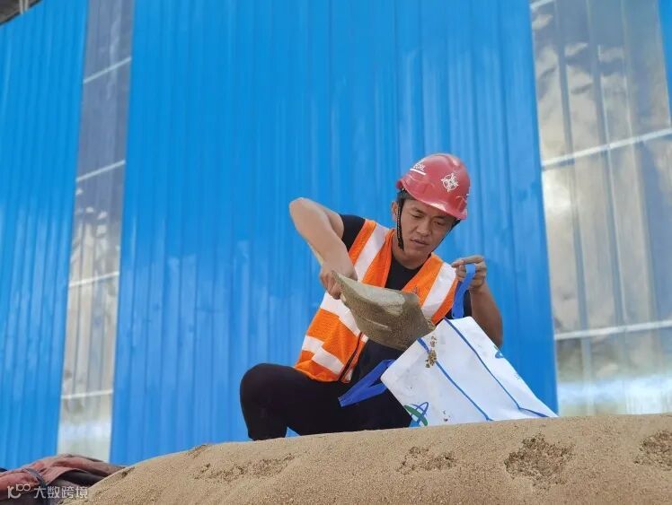 项目1号拌合站的大门外,经常会排起长长的车队,这些车辆运载着“喂养”混凝土的“食材”,李志新会对每车料进行严格的质量检查,确保将配料这个源头控制好。他不厌其烦地重复着检测工作:取样、检测、复核、编号、留样……如果原材料的“营养成分”不合格,例如砂石含泥量超高,李志新就会毫不留情地让运输车就地返回,不留一丝“健康”隐患。