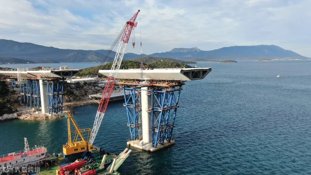 1月8日,经过数小时的连续奋战,克罗地亚佩列沙茨大桥项目SS12大节段钢箱梁架设成功,本节钢箱梁重约740t。