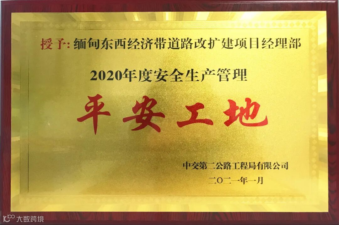 缅甸东西经济带道路改扩建项目经理部荣获“2020年度平安工地”荣誉称号