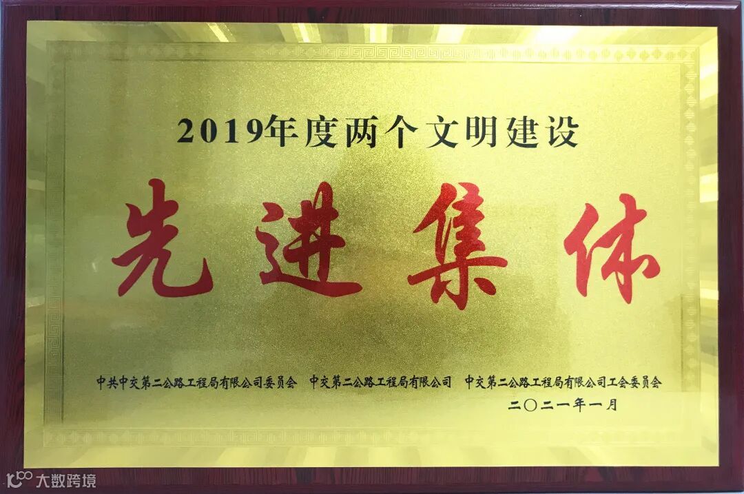中交马东铁项目五分部荣获“2019年度两个文明建设先进集体”荣誉称号