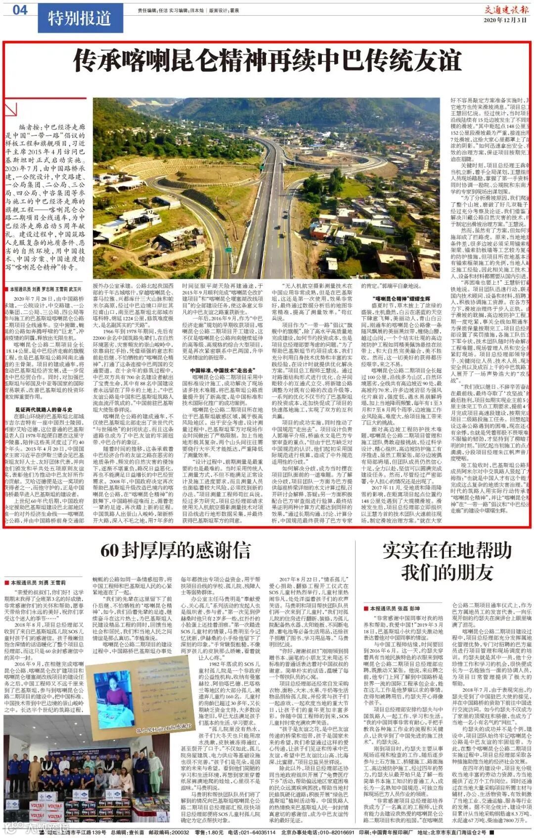 近日,《交通建设报》第四版刊登《传承“喀喇精神”再续中巴传统友谊》文章,详细报道了新时代路桥人充分发扬“喀喇昆仑精神”,克服复杂的地质条件、恶劣的自然环境、严峻的公共安全形势,肆虐的新冠肺炎疫情等各种困难和挑战,团结协作、攻坚克难,用智慧和汗水,高质量完成喀喇昆仑公路二期项目建设,用实际行动续写中巴友谊新篇章,