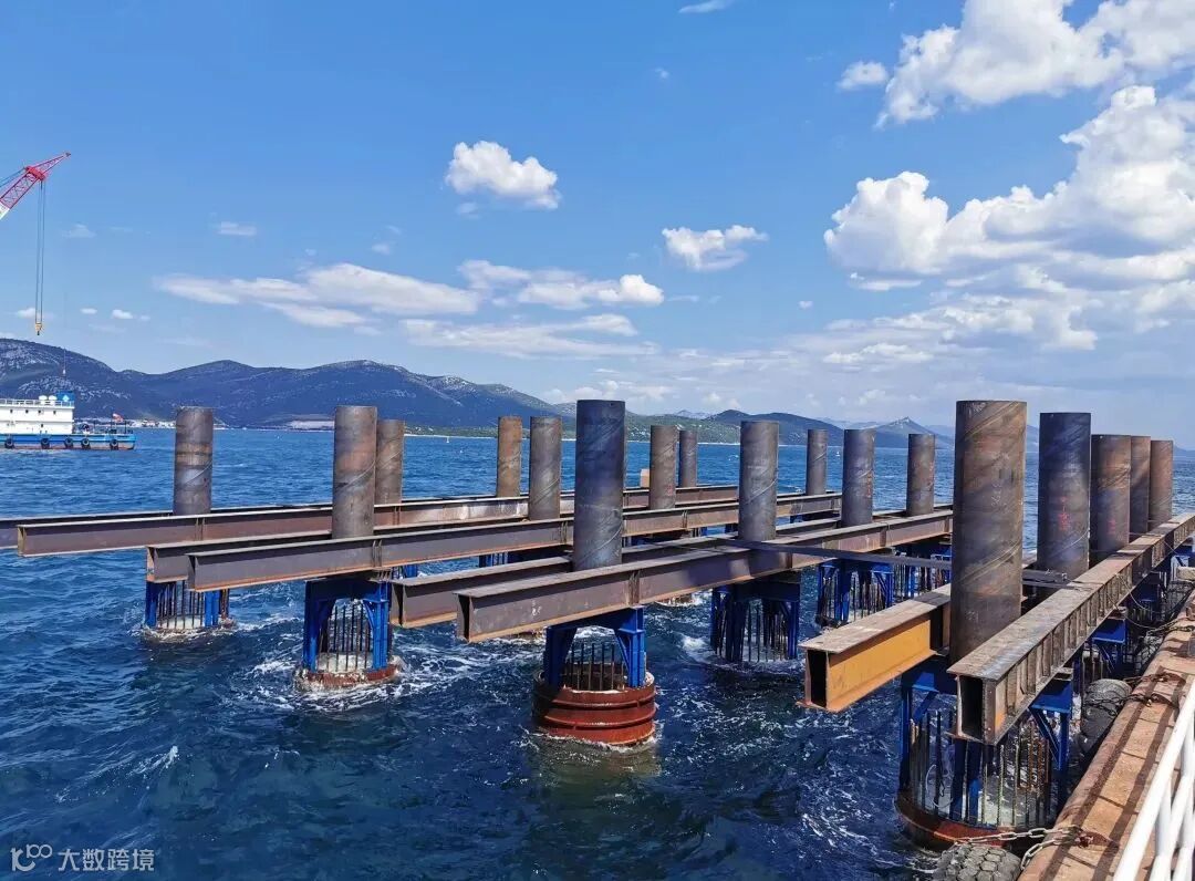 项目效用:该工艺主要用于大陆侧、岛侧岸上钢箱梁施工,应用过程未使用千斤顶等大型设备,无交叉作业面,成功实现了钢箱梁半自动化滑移过弯。该工艺减少了人工投入,降低了施工风险,顺利促成了岸上钢箱梁滑移安装节点任务顺利完成。