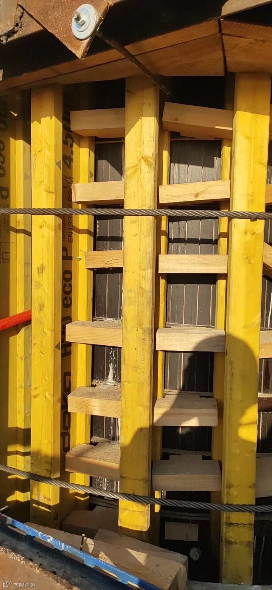 佩列沙茨大桥及连接线项目大桥所有墩身全部采用圆弧倒角矩形截面,鉴于克罗地亚没有做钢模板的习惯,当地多卡(Doka)模板供应商提供的皆为木制模板。圆弧倒角模板采用21mmWISA板弯曲而成,大大增加了模板制作的难度,也对模板加工提出非常高的要求,考验着项目模板加工人员深厚的制作功底。