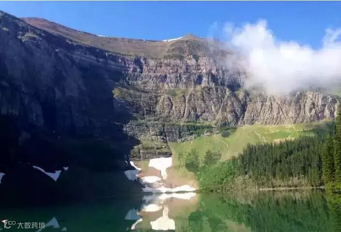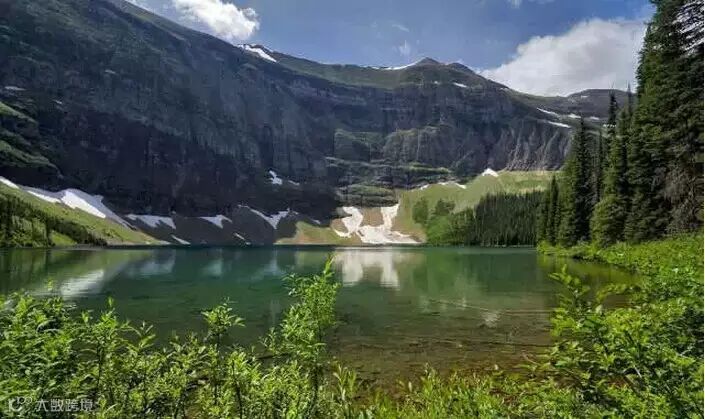 走到小径尽头,你会发现前方远远的出现一片宝石一样的蓝绿色,颜色鲜艳得让人舍不得移开自己的目光,这就是Wall Lake了。只有亲自走到这里才能体会,为什么这个湖起名叫Wall Lake。原来,整个湖泊背靠着一座像墙一样的峭壁Akamina山脊,山是直上直下的,从湖那边拔地而起,在落基山大大小小的高山湖中是绝无仅有的。山的雄伟与湖的静谧完美的结合在一起,湖水非常清澈,呈现出一幅高山流水的画卷。因为Wall Lake并不被大家熟知,所以很少会遇到大批的游客,绝对是你值得探索的景点之一。