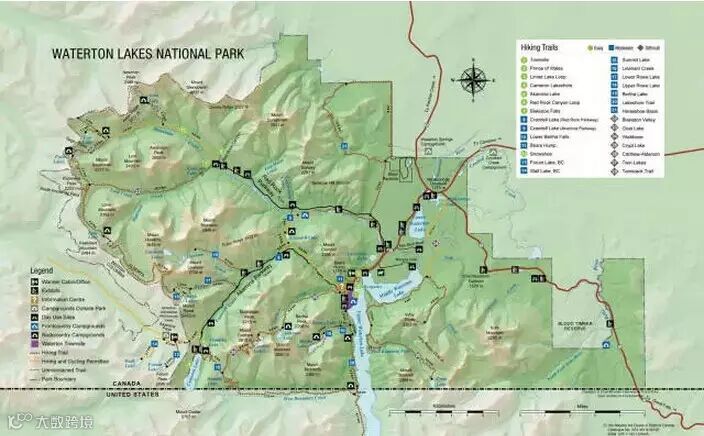加拿大的夏天是美丽而短暂的。除了大家非常熟知的Banff,Jasper,Yoho,Kootenay这些国家公园之外,这次我们要向大家介绍座落在艾伯达最南端,据说也是最美的一座国家公园。沃特顿湖国家公园Waterton Lakes National Park,是世界上唯一一座拥有三大头衔的公园。它与美国蒙大拿州的冰河国家公园Glacier National Park,合并成为沃特顿-冰河国际和平公园(Waterton-Glacier International Peace Park), 是人类史上第一座世界和平公园,于1979年并指定为生物圈保护区,也被联合国教科文组织于1995年列为世界遗产。作为加拿大第四座国家公园,沃特顿湖国家公园的面积却并不大,是加拿大洛基山脉最小的一座国家公园,只有505平方公里。可就是这样一座不算大的国家公园,却兼有山川和草原两种地貌特征,享有“隐藏在皇冠里的宝石”的美誉。
