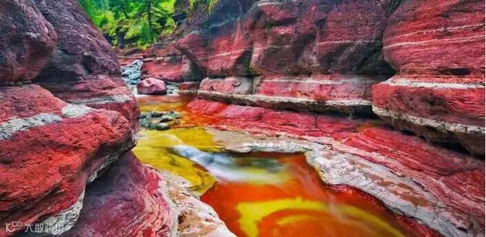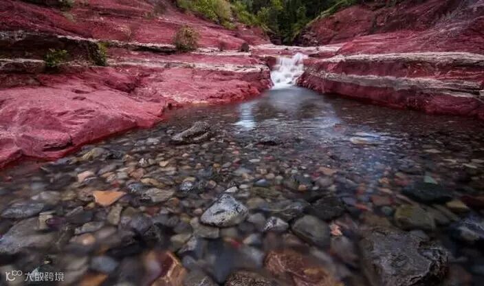 红岩峡谷可以说是沃特顿的必去景点,从小镇驱车16公里后,到达Red Rock Parkway。据说这里是看野生动物的好去处,也是沃特顿湖公园的著名风景线。这条路很好地展示了由草原到洛基山脉的过渡,沿途风景叹为观止,先经过平缓而开阔的原野,然后是层层叠叠的起伏丘陵,最后逐渐进入山区。六月时,还可以看到路边有各色盛开的野花,白桦林也在蓝天的映衬下为这幅美丽的画卷增添了别样的色彩。红岩峡谷是以独特的地质构造而闻名的,据说这里的岩石富含铁元素,而红色岩石的形成则是因为曾经暴露在空气中被氧化的结果,而白色的岩石则没有被氧化,而它们距今已经有1.5亿年的历史了。