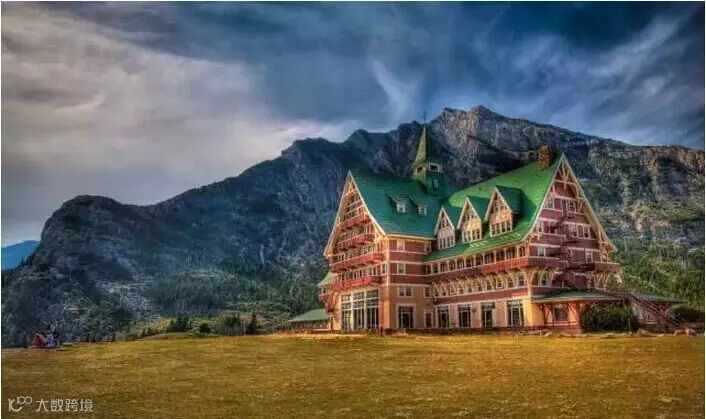 这座横跨两个国家的国家公园,最显著的地标自然是沃特顿湖。要是非一定要在湖上找出美加两国的国界的话,那么1927年在沃特顿湖上建立的威尔士王子酒店就是最好的分界了。这个酒店是艾伯达省最大的全木制酒店之一,古老的城堡座落在依山傍水的湖畔,周围云雾缭绕,让人有一种走进童话王国的错觉。站在这里以可以尽览美加两国的风景。游客还可以在这里享用到非常传统的下午茶。