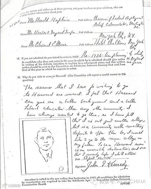 哈佛大学的Essay问题是“你为什么选择哈佛大学”,以下是肯尼迪当年的回答。