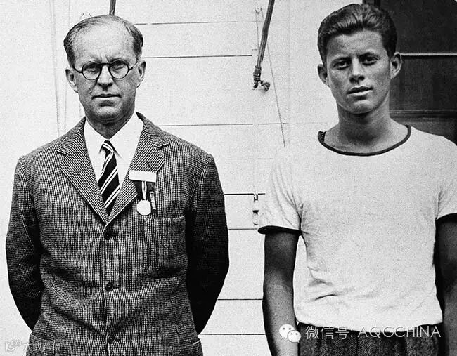 约翰·F·肯尼迪与他的父亲,约瑟夫·P·肯尼迪于1937年在哈佛大学校园合影