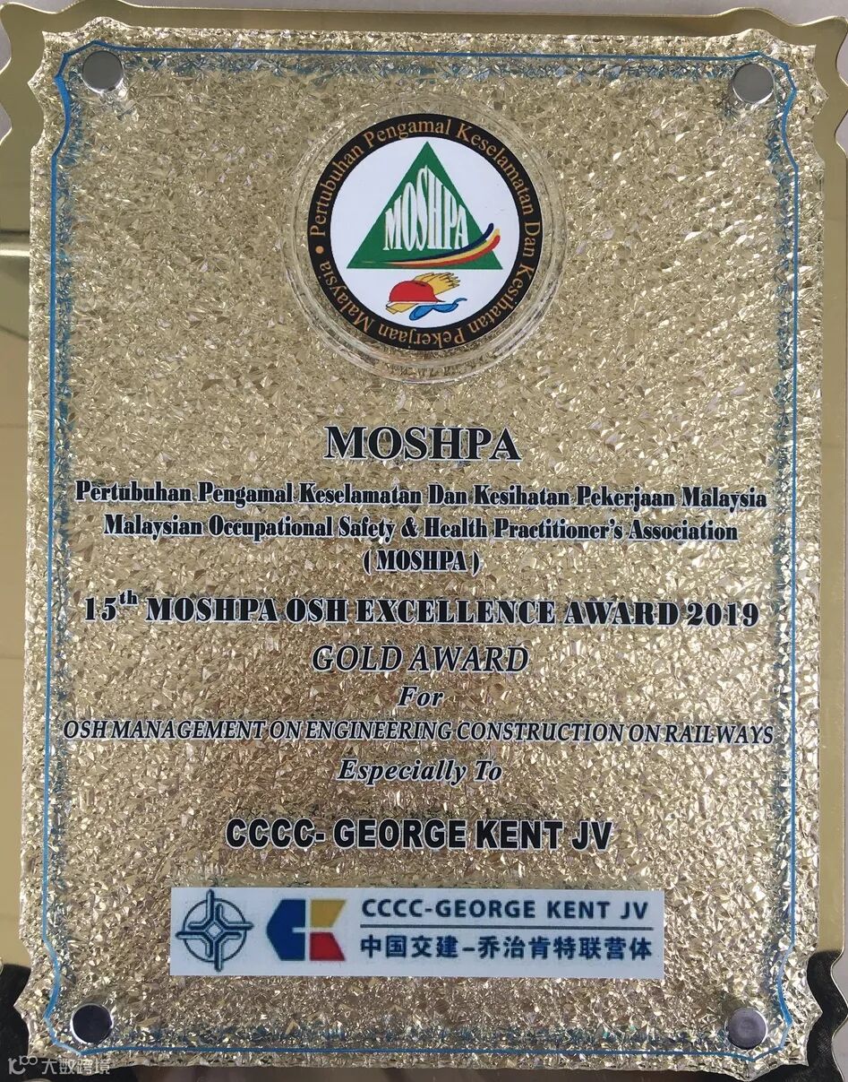 经过多级审核,项目从参加此审活动的48家公司和项目中脱颖而出,荣获轨道工程施工OSH管理金奖。