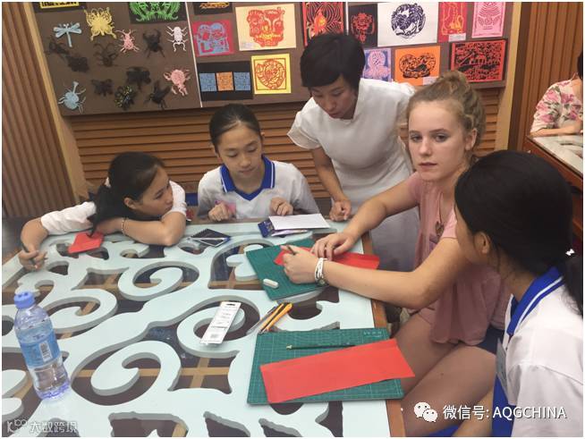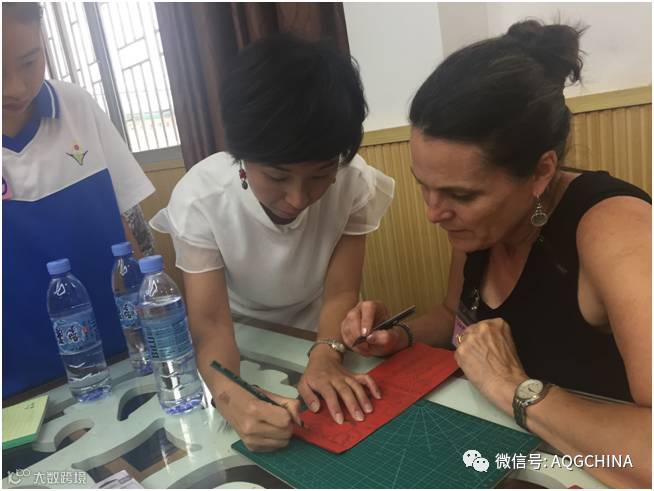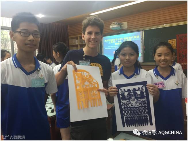 Duncan和Paige在佛山市第十中学体验剪纸文化