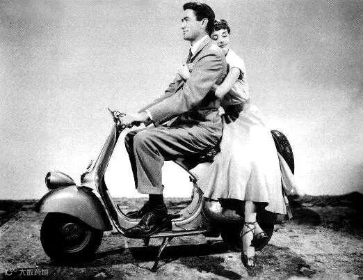 好莱坞电影《罗马假日》中,格里高利·派克饰演的小记者乔伊在罗马偶遇奥黛丽·赫本饰演的公主,剧中乔伊载着公主穿梭罗马大街小巷的就是一辆Vespa。《罗马假日》在当年获得 4座奥斯卡小金人,Vespa以它轻巧可爱的造型也随之风靡全球。